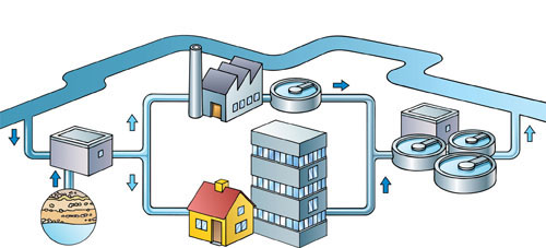 - распределение: вода распределяется с установок водоподготовки на потребителей.