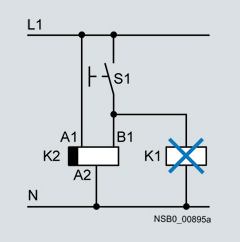 Подключение нагрузок параллельно пусковому входу при использовании напряжения управления переменного тока не допускается (см. схемы).