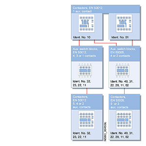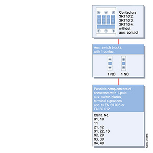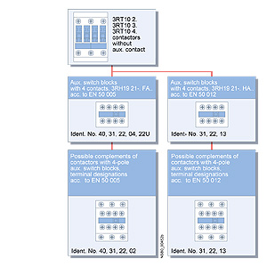 Все контакторы типоразмера S00 с встроенным доп.контактом (номера 10E или 01) и четырехполюсные контакторы могут быть преобразованы в контакторы с 3 или 5 доп.контактами (в случае контакторов с 4 полюсами, 2 или 4 доп.контактами) установкой допконтактов соответствующих EN 50005 с номерами от 40 до 02 . Идентификационные номера на блоке контактов применимы тольк к доп.контактам на нем.