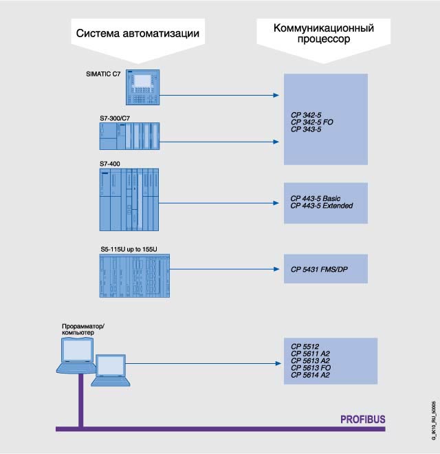 - Стандартные функции связи (протокол PROFIBUS-FMS).