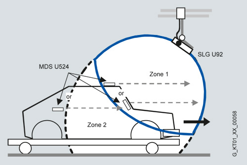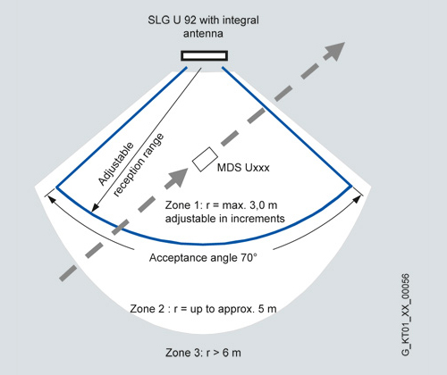 Несмотря на низкую мощность излучения УВЧ-системы имеют относительно большое рабочее расстояние. Излучаемое поле имеет диаграмму направленности, которая зависит от конструкции антенны. Чтобы поддерживать низкие энергетические потребности MDS и обеспечить удобство определения местоположения, MOBY U имеет различные функциональные зоны, которые зависят от направления и расстояния. Эти три различных зоны передающего поля идентифицируются различными состояниями и реакциями затронутых компонентов.