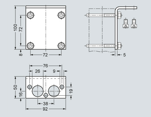 Монтажный уголок (7MF9006-6QA)/(M19) для 3-х и 5-ти шпиндельного вентильного блока, размеры в мм
