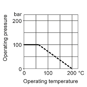 Кран переключения PN 100 и допустимое избыточное рабочее давление в зависимости от допустимой рабочей температуры