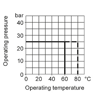Кран переключения пониженого давления и допустимое избыточное рабочее давление в зависимости от допустимой рабочей температуры