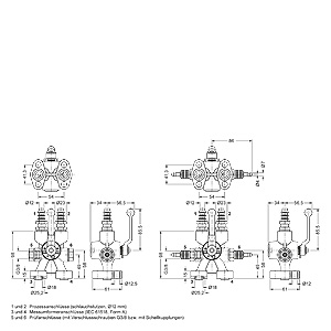 Кран переключения пониженного давления для прямой установки во фланец на измерительный преобразователь дифф. давления, размеры в мм