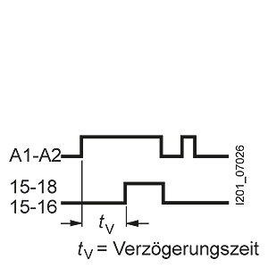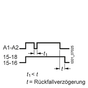 Функции RV, IF, AW, AV/RV запускаются через управляющий вход B1 (+) потенциалом по отношению к зажиму A2. Для этого может быть использовано как вспомогательное напряжение зажима A1, так и любое другое напряжение из диапазона AC/DC 12 ... 240 В. При этом подключение параллельной нагрузки (например, контакторов) между B1 (+) и A2 также допускается. Если при выполнении функции IF к управляющему входу B1 (+) и зажиму A1 будет одновременно подано напряжение, то генерируется выходной импульс с установленной продолжительностью времени t1.