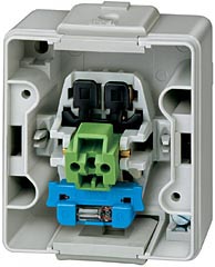 Откидная крышка розеток SCHUKO предотвращае проникновение влаги. Электрические части розеток снабжены соеденительными зажимам, согласно DIN VDE 0620, зарекомендовавшими себя на протяжении многих лет.