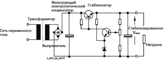 Стабилизированные блоки питания включают в свой состав электронный регулятор, обеспечивающий стабилизацию выходного напряжения на заданном уровне с минимальным отклонением от этого уровня при изменениях входного напряжения или нагрузки.