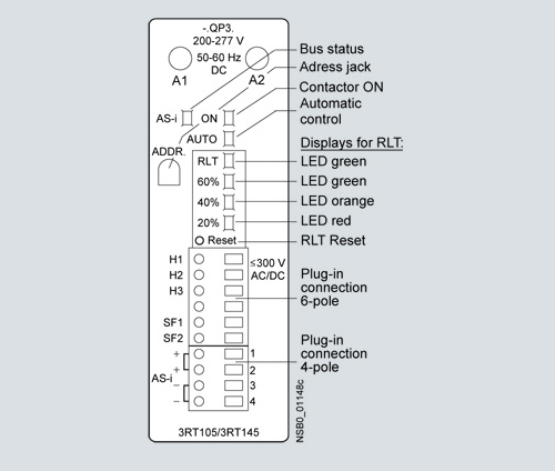 Исполнение 3RT1...-.Q : Коммуникабельное с встроенным AS-интерфейсом и сигнализацией остаточного ресурса контактов.