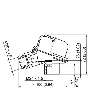 Соединительная головка, форма B, класс защиты IP 54, из пластика, с резьбовой крышкой, размеры в мм (дюймах)