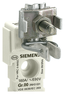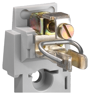 Плоский зажим предназначен для подключения шин или кабельных наконечников. Он имеет фиксацию от проворота винта с уплотнительной и пружинной шайбой и гайкой. При затягивании гайки необходимо соблюдать момент затяжки из−за значительного влияния рычага.
