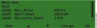 Для «Быстрого ввода в эксплуатацию» требуется ввести только 5 (пять) параметров электродвигателя: номинальная выходная мощность, частота вращения, номинальный ток, напряжение и частота сети. Эти данные можно получить на шильдике электродвигателя и, затем, ввести вручную с помощью краткого меню, отображаемого на дисплее.