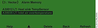 Любые происходящие Аварийные предупреждения отображаются мигающим желтым светодиодом «ALARM»; любые происходящие Аварийные сбои/отлючения отображаются горящим красным светодиодом «FAULT». В строке состояния дисплея при этом появляется дополнительное справочное текстовое сообщение о причине.