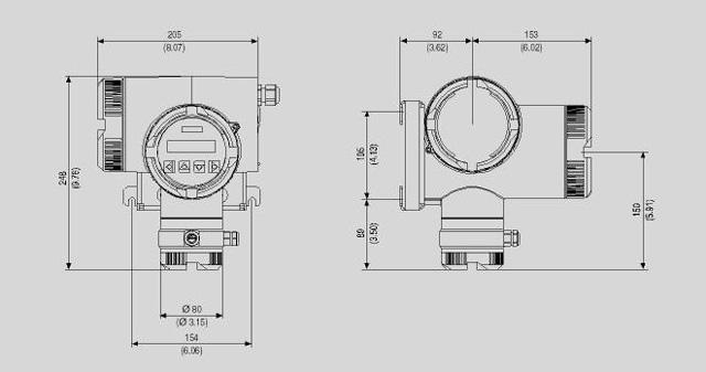 SITRANS F M измерительный преобразователь Transmag 2 с опционной монтажной панелью подх дит и для монтажа натрубопровод, размеры в мм (дюймов)