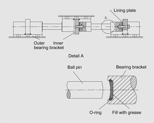 Опора А несущей конструкции опирается на фундамент через два болта с шаровой головкой и контропоры В и С. За счет этого А зафиксирована в направлении контропоры, а в вертикальном направлении, наоборот, возможен свободный откат.