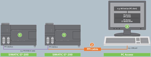 - Всегда практично – с соединительным кабелем Multimaster возможен доступ к нескольким ЦПУ SIMATIC S7-200.