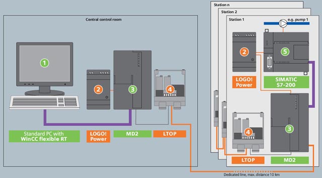 Простое управление удаленно-установленным SIMATIC S7-200, модем выделенной линии MD2 и WinCC flexible RT