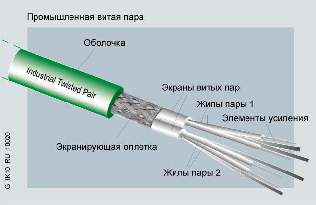 Терминалы могут быть подключена с помощью промышленной витой пары (ITP). Предварительно собранные ITP кабели промышленной витой пары с соединителями D-типа доступны для соединения между станциями и сетевыми компонентами. Максимальная длина кабеля 100 метров.
