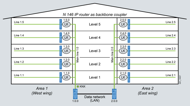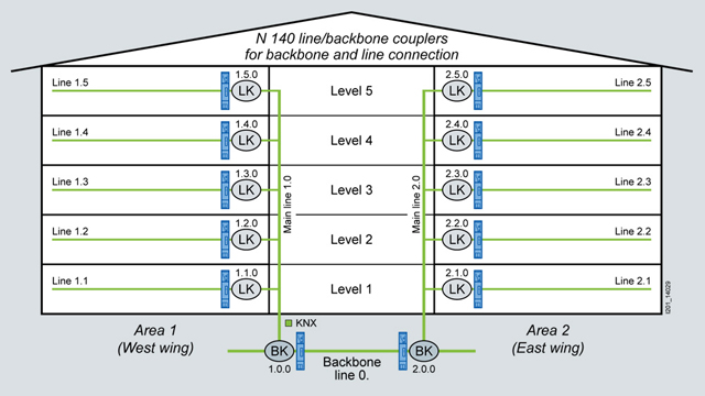 Другие системы, такие как оптоволокно или W-LAN, также могут быть использованы для связи отдельных зданий и для обмена телеграммами с групповыми адресами.