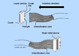 Плоский кабель вставляется в 16-контактный разъем. На разъеме имеется направляющий элемент. Контакт 1 отмечен треугольником со стороны направляющего элемента.