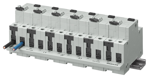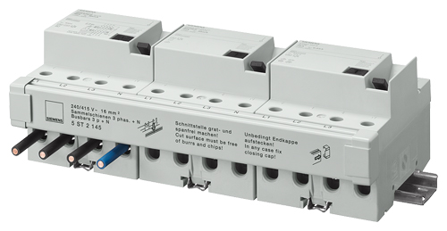 - Соединяя автоматические выключатели с 4-пол. RCCBs с правосторонней N-клеммой и трехфазную шину, используют специально разработанную для этого случая шину. Никаких дополнительных компонентов и операций не требуется.