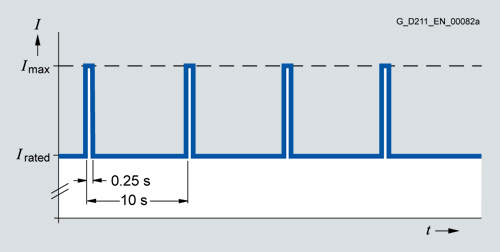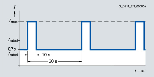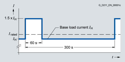 Нагрузочный цикл с перегрузкой 60 сек при длительности нагрузочного цикла в 300 сек