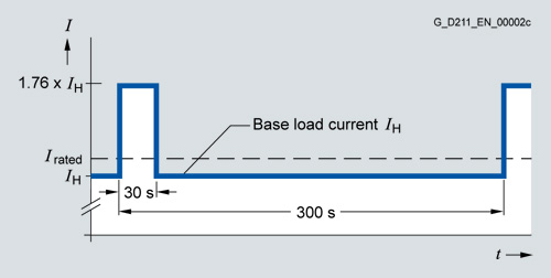 Нагрузочный цикл с перегрузкой 30 сек при длительности нагрузочного цикла 300 сек