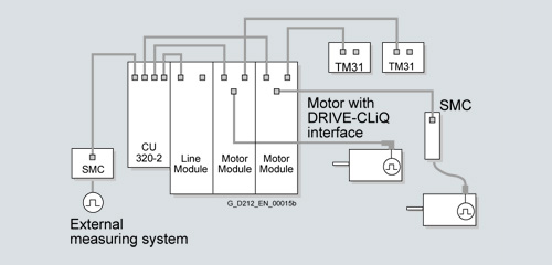 Компоненты взаимодействуют друг с другом через стандартный интерфейс DRIVE CLiQ.