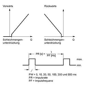 Вес импульса: выходы A/B конфигурируются как объем на один импульс, вычисляемый на прямом/реверсном потоке или потоке нетто. Величина веса импульса свободно масштабируется (через ПО PDM).