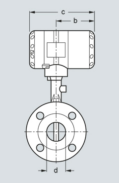 Фланцевая версия, вид сбоку, b = 105 мм (4.13 дюймов), c = 179 мм (7.05 дюймов)