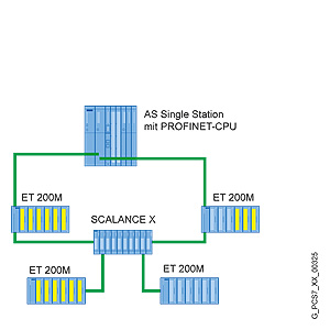 Отказобезопасные станции автоматизации на основе ЦПУ линейки S7‑400, как одиночные (нерезервированные) AS (F-системы), так и отказоустойчивые(резервированные) AS (FH-системы), могут просто и эффективно объединяться в сеть PROFINET IO со станциями распределенной периферии ET200M. Для этой цели, в системах автоматизации доступны интерфейсы PN/IE, интегрированные в ЦПУ, а в станциях распределенной периферии ET 200M интерфейсы PN/IE интегрированы в интерфейсные модули IM 153‑4 PN High Feature.