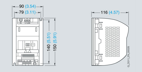 Инверторы типоразмера B; 1.1 кВт до 1.5 кВт