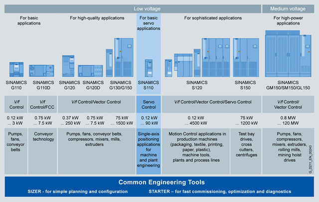 Для любой задачи SINAMICS - оптимальный привод. Он может конфигурироваться, параметрироваться, диагностироваться одинаковыми стандартными средствами.