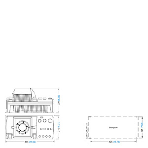 Необходимый зазор для вентиляции сверху и снизу: 150 мм (5.9 дюймов)