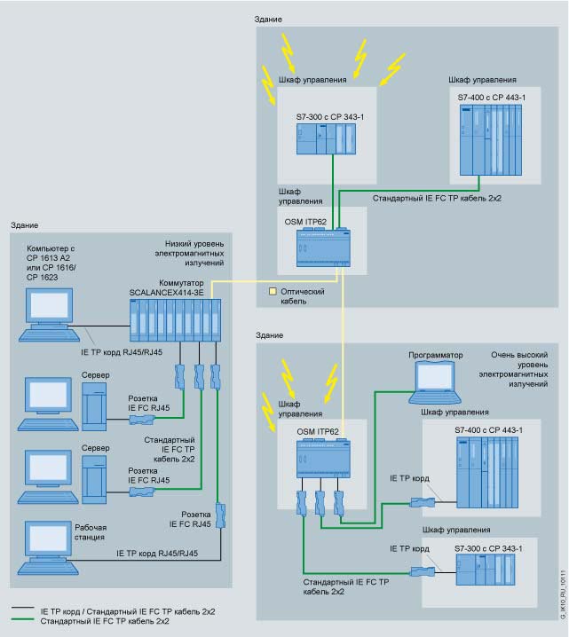 Пример конфигурации с ITP, TP и оптическим кабелями