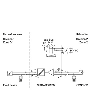 SITRANS I200 разделитель питания с HART, схема подключения