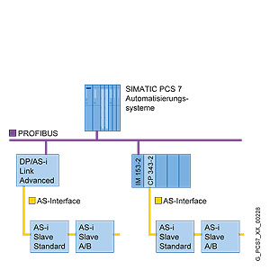 Библиотека блоков SIMATIC PCS 7 AS-i поддерживает в качестве ведущих устройств AS i master коммуникационные процессоры CP 343 2 и CP 343 2P, использующиеся в станциях удаленного ввода-вывода ET 200M на PROFIBUS.