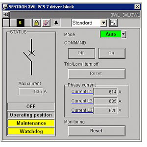 Библиотека блока SENTRON 3WL/3VL может быть использована для простой и быстрой интеграции автоматов SENTRON 3WL/3VL в систему управления распределенными процессами SIMATIC PCS7.