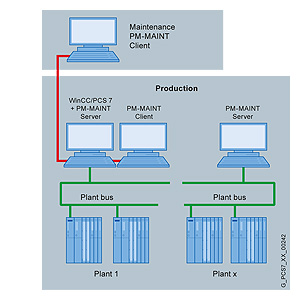 PM-MAINT является масштабируемой системой и конфигурируется в соответствии с Вашими требованиями как одноместная станция или как распределенная клиент/серверная архитекиура. PM-MAINT может устанавливаться в дополнение к SIMATIC PCS 7 OS ПО на одноместной станции, сервере или клиенте.