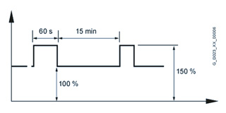 Указанный на типовой табличке преобразователя номинальный постоянный ток (максимально допустимый длительный ток) во время работы может превышаться. Для величины превышения и его длительности существуют границы, суть которых разъясняется ниже.