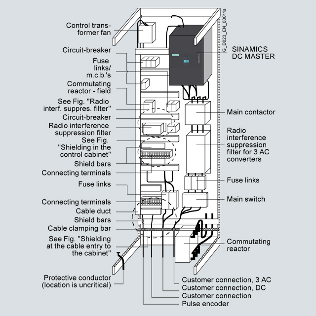 Пример дизайна шкафа с SINAMICS DC MASTER до 850 A