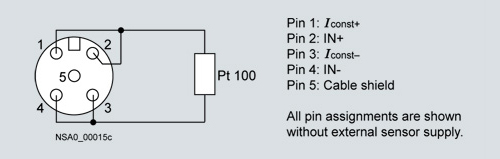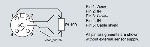 4-проводное подключение датчика Pt100