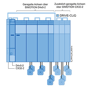 Пример: Группа из 12 осей с контроллером SIMOTION D4x5-2 и модулем расширения SIMOTION CX32-2