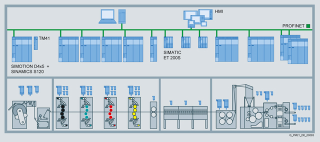 Высокодинамичные и компактные приводы SINAMICS S120используются для всех осей станка. Высокоточный энкодер обеспечивает адаптацию регулятора к переменной длине окружности цилиндра и массе. Более высокая компактность достигается использованием двухдвигательных модулей.