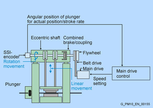 В прессах штамповочных автоматах высокие требования предъявляются к времени обработки критичных функций (кулачковые переключатели, контроль процесса, и т.д.). Универсальные прессы с частотами ходов до 100, максимум 200 ходов в минуту являются в большинстве случаев простыми прессами с малой степенью автоматизации. При частотах ходов от 200 до 500 ходов в минуту, у штамповочных автоматов со скоростью до 2000 ходов в минуту сложность системы управления и требования ко времени реакции и степени автоматизации значительно возрастают.