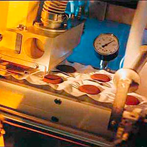 Теперь запакованные емкости разрезаются на маленькие блоки и передаются на дальнейшую упаковку.
