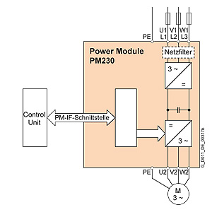 Силовые модули PM230 связываются через интерфейс PM-IF с управляющим модулем.