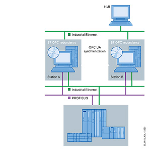 S7 OPC Redundancy является программным продуктом, совместимым со стандартом OPC UA, позволяющим создавать резервированные конфигурации OPC UA серверов для доступа к данным систем автоматизации SIMATIC S7. Резервированные OPC UA серверы обеспечивают гарантированный доступ к данным систем автоматизации для выполнения операций оперативного управления и мониторинга. Такое решение не требует ни использования кабелей синхронизации для построения резервированных OPC UA серверов, ни дополнительных затрат на программирование на компьютерах. OPC UA серверы синхронизируются через высокопроизводительные точки доступа Industrial Ethernet со скоростью обмена данными 10, 100 и 1000 Мбит/с. S7 OPC Redundancy является интегрированным решением для всех программных и аппаратных компонентов SIMATIC NET мира автоматизации.