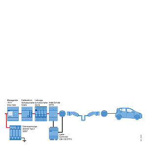 Стандарт IEC 61851 описывает требования по безопасности которым должны соответствовать зарядные системы для электрических автомобилей. Стандартная AC зарядка работает в 3-х режимах и управляется зарядным контроллером SIPLUS ECC1000 CM-100, потоянно установленном в зарядных станциях при коммуникации с электрическим автомобилем через зарядный кабель. Он распознает корректность подключения зарядного кабеля. Если да, активируется блокировка разъема и обратный сигнал посылается в зарядный контроллер. Далее активируется Insta контактор 5TT5 коммутирующий зарядный ток и зарядка начинается.