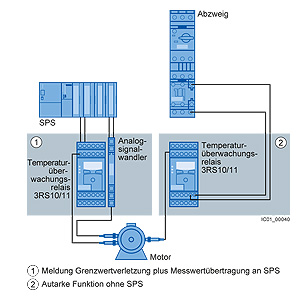 Реле контроля температуры SIRIUS 3RS10/3RS11 могут применяться для измерения температуры в твердых, жидких и газообразных средах. Температура измеряется датчиком в среде и обрабатывается реле, которое контролирует превышение верхней или нижней границы рабочего диапазона, а также уставки в пределах заданного диапазона (функция окна).